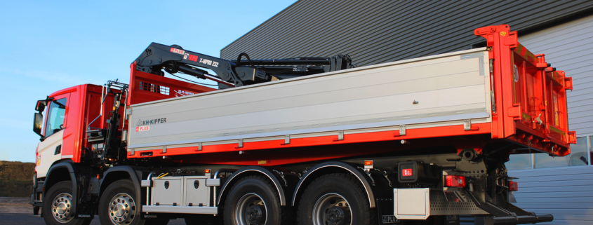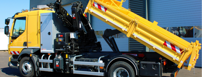 Livraison d’un véhicule 16T équipé d’une grue HIAB X-HIDUO 082 BS-3 et d’une benne type transporteur.